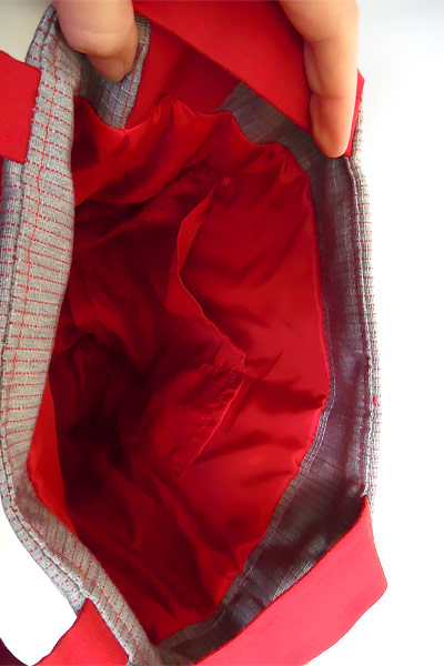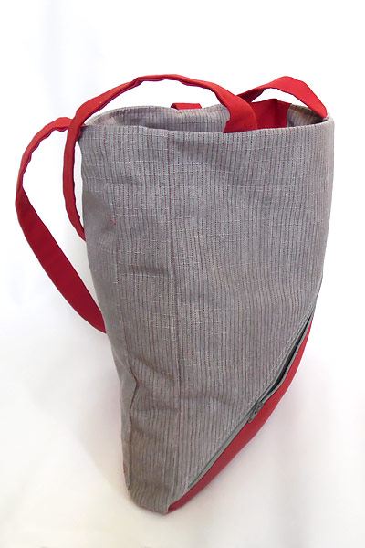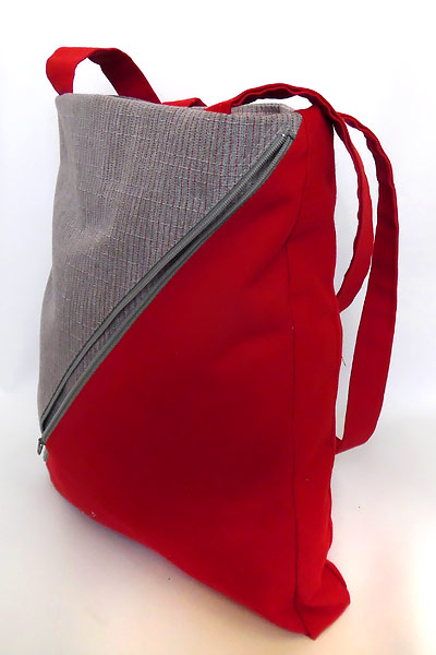 Fait en toile de store donc très solide. 2 poches extérieures : 1 avec zip et l’autre plaqué. Doublé en polyester rouge avec poche intérieure pour carte bleu.